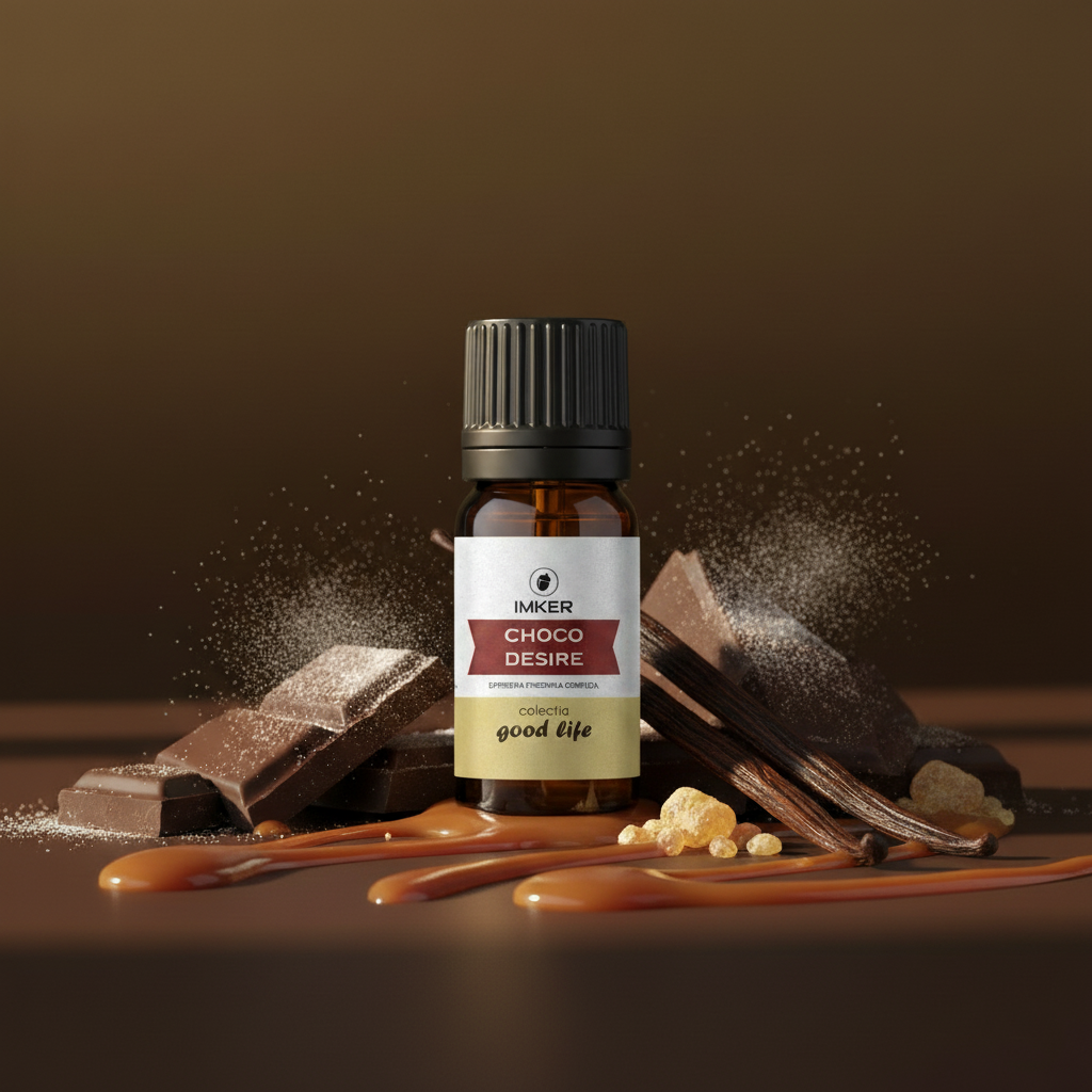 Inspirat de ciocolateria artizanală, Choco Desire combină ciocolata neagră cu vanilia și ambra lemnoasă. Este un parfum matur, intens, care induce o stare de serenitate și lux discret.